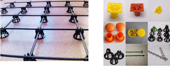 It is commonly applied in slabs,floors,foundations,and precast concrete elements.These spacers prevent rebar from sagging or shifting during pouring,helping to achieve structural durability and safety.